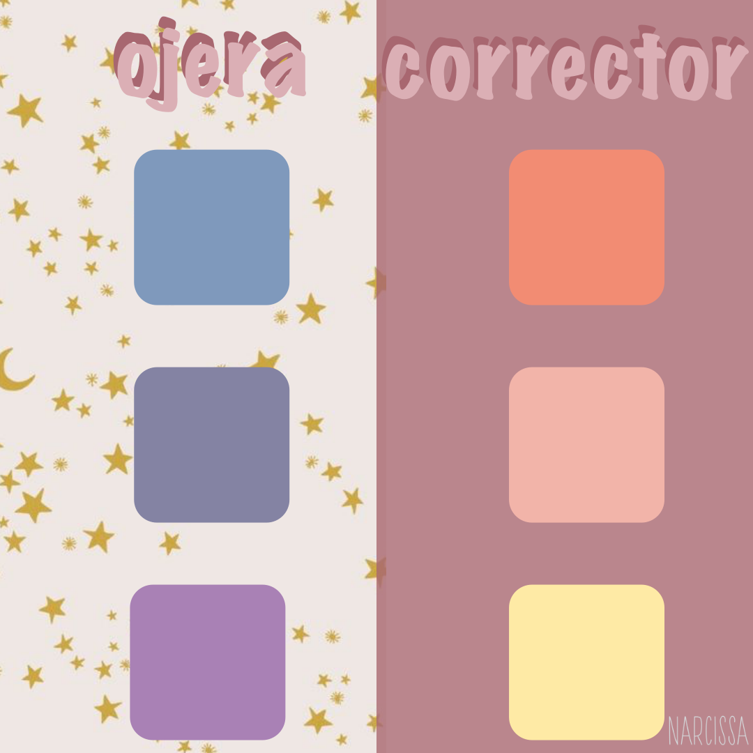 Si tu base o tu corrector de diario no te cubre todas las ojeras, puedes usar el color correcting. Aquí te pongo esta guía para que sepas de qué color debes comprar tu corrector según el color de tus ojeras.